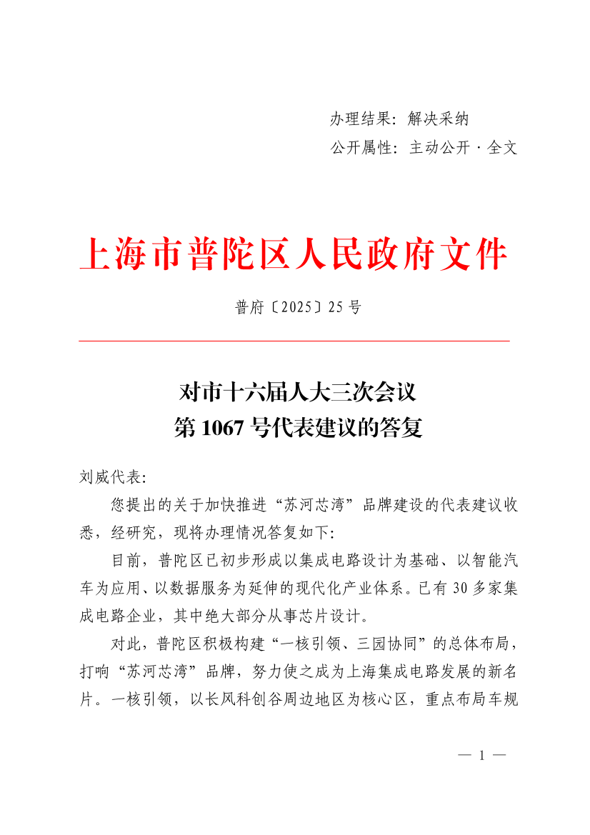 对此,普陀区积极构建“一核引领、三园协同”的总体布局,打响“苏河芯湾”品牌,努力使之成为上海集成电路发展的新名片。一核引领,以长风科创谷周边地区为核心区,重点布局车规级芯片、人工智能芯片、高算力芯片、其他前沿芯片等领域的研发设计及总部办公等功能。三园协同,以长风生态商务区、天地软件园、桃浦智创城为协同区,布局软件设计、终端应用等上下游关联产业。