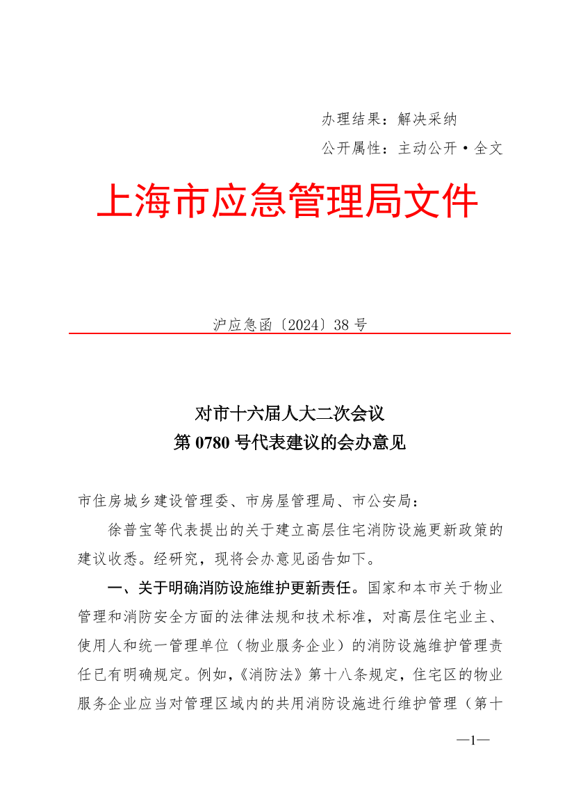 徐普宝等代表提出的关于建立高层住宅消防设施更新政策的建议收悉。经研究,现将会办意见函告如下。