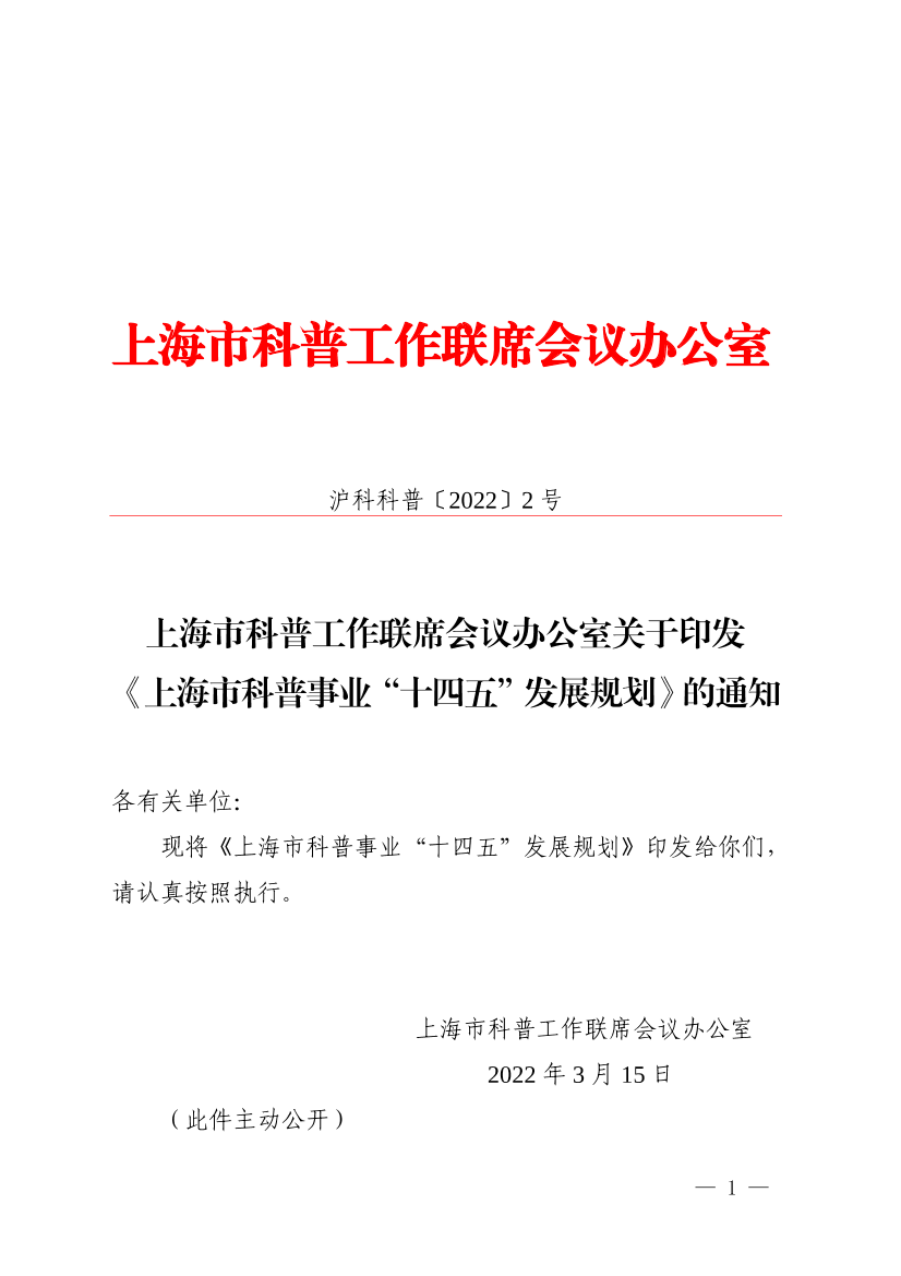 上海市科普工作联席会议办公室关于印发《上海市科普事业“十四五”发展规划》的通知