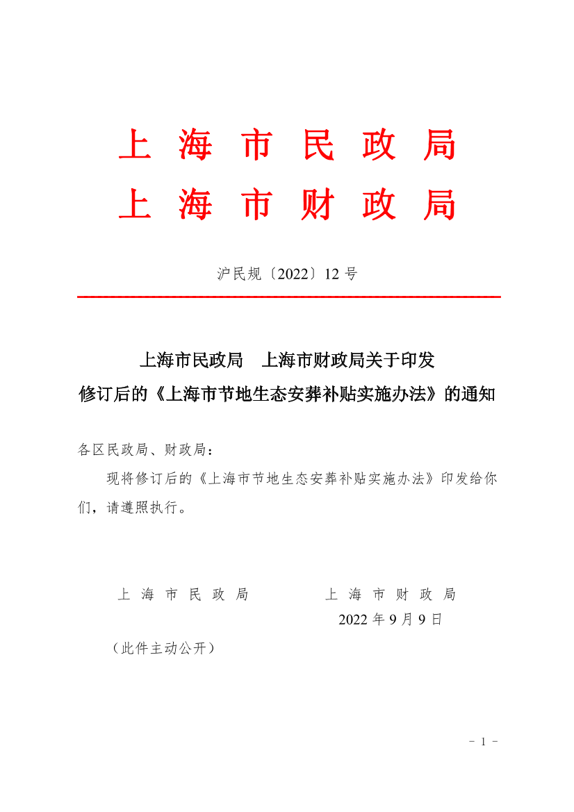 现将修订后的《上海市节地生态安葬补贴实施办法》印发给你们,请遵照执行。