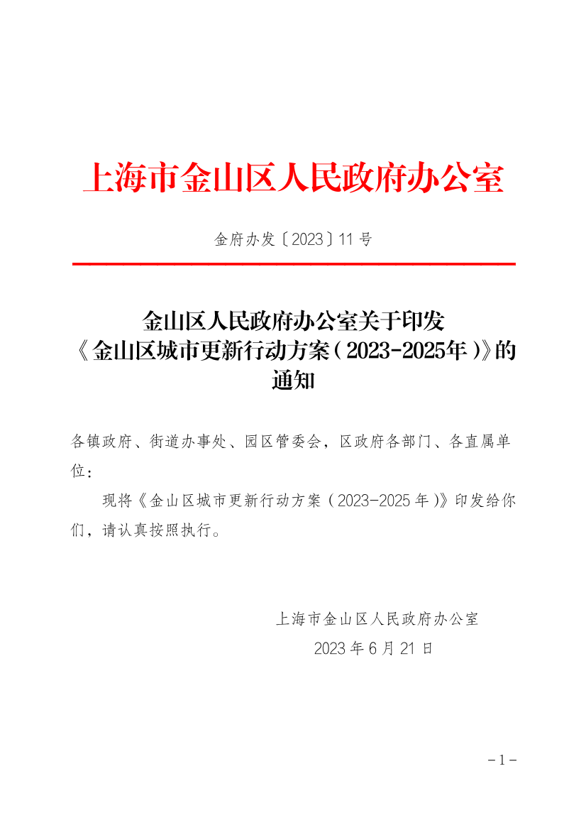 现将《金山区城市更新行动方案(2023-2025年)》印发给你们,请认真按照执行。