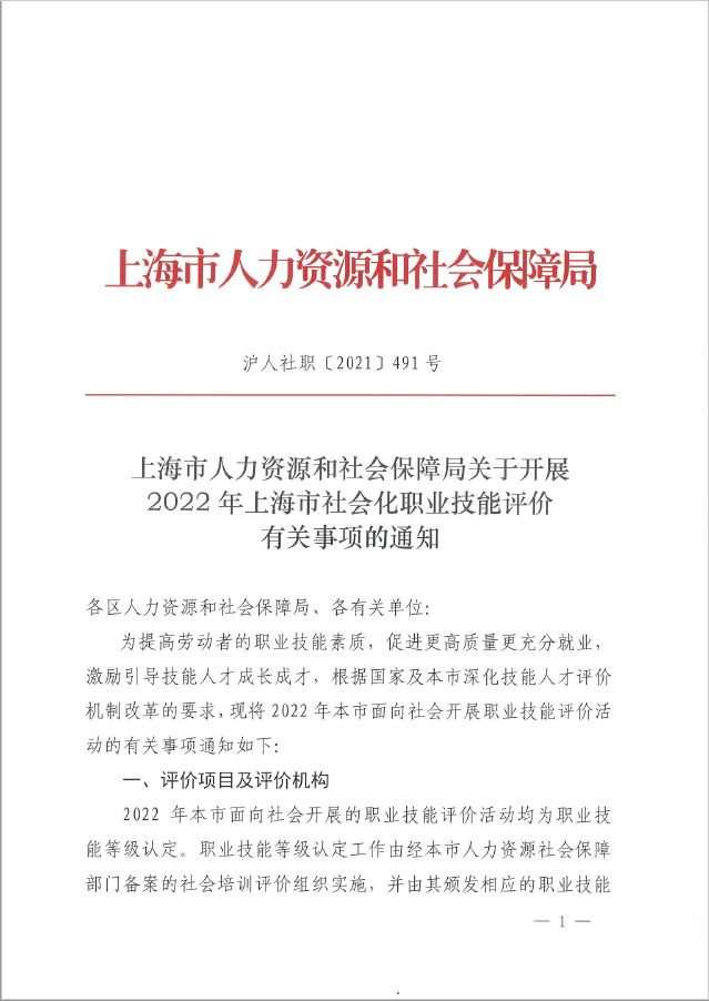 为提高劳动者的职业技能素质,促进更高质量更充分就业,激励引导技能人才成长成才,根据国家及本市深化技能人才评价机制改革的要求,现将2022年本市面向社会开展职业技能评价活动的有关事项通知如下: