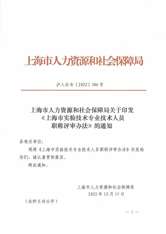 现将《上海市实验技术专业技术人员职称评审办法》印发给你们,请认真贯彻落实。