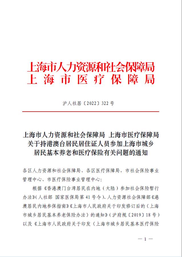 根据《香港澳门台湾居民在内地(大陆)参加社会保险暂行办法》(人社部 国家医保局第41号令)、人力资源社会保障部《港澳居民内地参保指南》《上海市人民政府关于印发修订后的〈上海市城乡居民基本养老保险办法〉的通知》(沪府规〔2019〕18号)以及《上海市人民政府关于印发〈上海市城乡居民基本医疗保险办法〉的通知》(沪府规〔2020〕30号)等规定,现就持港澳台居民居住证人员(以下简称“港澳台居民”)在本市参加城乡居民基本养老保险(以下简称“城乡居民养老保险”)及城乡居民基本医疗保险(以下简称“城乡居民医疗保险”)有关问题通知如下:
