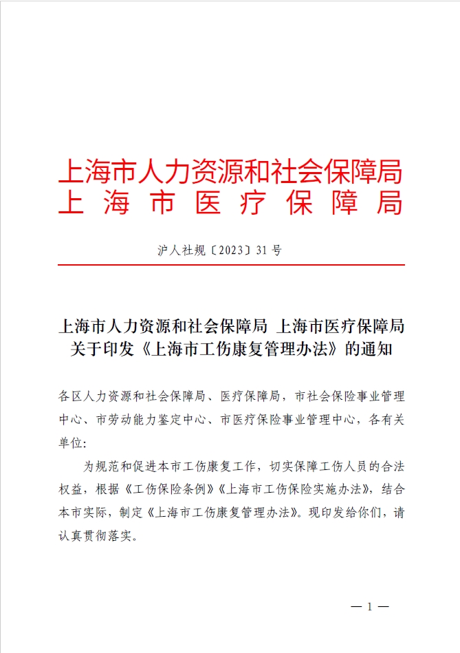 为规范和促进本市工伤康复工作,切实保障工伤人员的合法权益,根据《工伤保险条例》《上海市工伤保险实施办法》,结合本市实际,制定《上海市工伤康复管理办法》。现印发给你们,请认真贯彻落实。