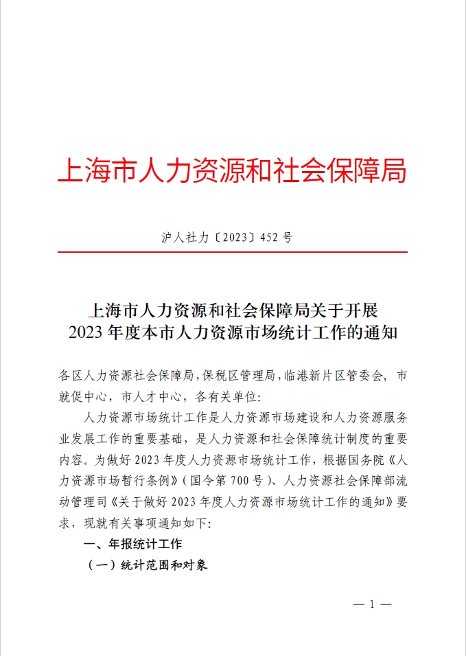 人力资源市场统计工作是人力资源市场建设和人力资源服务业发展工作的重要基础,是人力资源和社会保障统计制度的重要内容。为做好2023年度人力资源市场统计工作,根据国务院《人力资源市场暂行条例》(国令第700号)、人力资源社会保障部流动管理司《关于做好2023年度人力资源市场统计工作的通知》要求,现就有关事项通知如下: