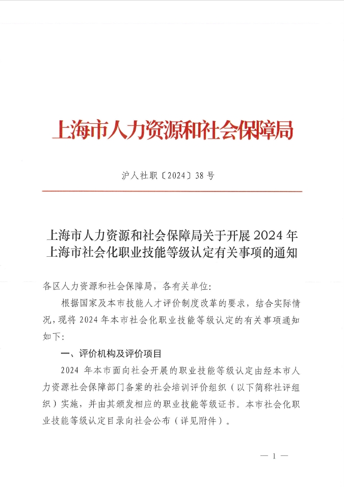 根据国家及本市技能人才评价制度改革的要求,结合实际情况,现将2024年本市社会化职业技能等级认定的有关事项通知如下: