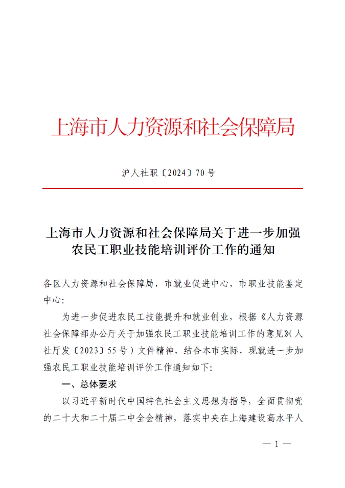 为进一步促进农民工技能提升和就业创业,根据《人力资源社会保障部办公厅关于加强农民工职业技能培训工作的意见》(人社厅发〔2023〕55号)文件精神,结合本市实际,现就进一步加强农民工职业技能培训评价工作通知如下: