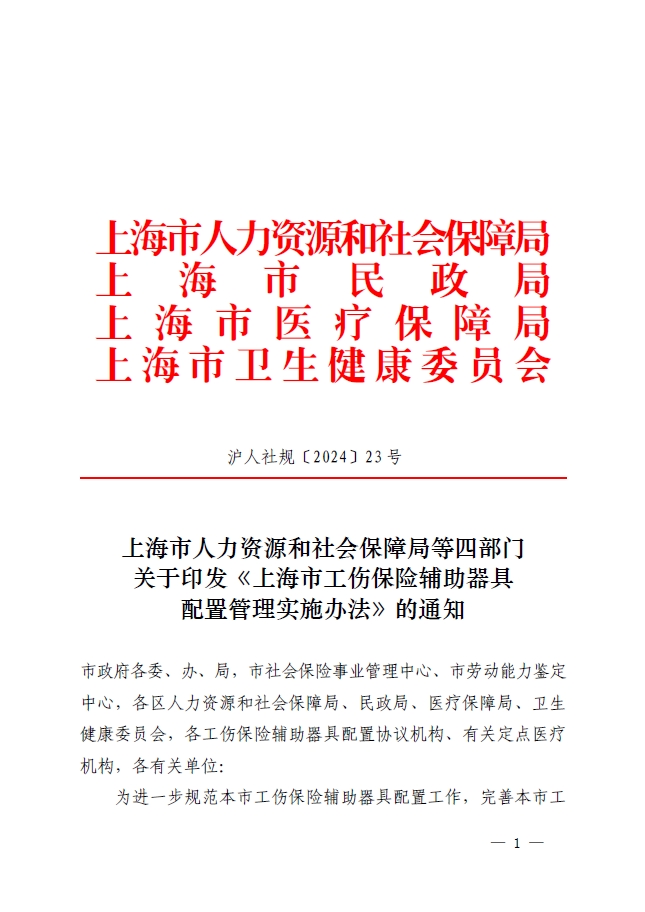 为进一步规范本市工伤保险辅助器具配置工作,完善本市工伤保险制度,切实保障工伤人员的合法权益,根据人力资源和社会保障部、民政部、国家卫生和计划生育委员会《工伤保险辅助器具配置管理办法》(第27号令),结合工作实际,本市修订完善了《上海市工伤保险辅助器具配置管理实施办法》,现印发给你们,请遵照执行。