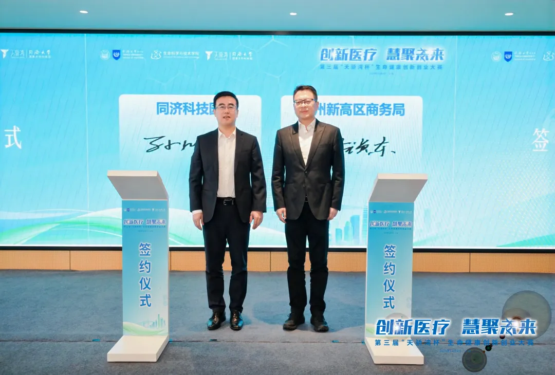 活动当天,同济科技园还分别与农行上海普陀支行、泰州新高区商务局签署战略合作框架协议。下一步,将依托同济大学的科研与人才优势,一手借助银行金融端的投融资孵化基金、一手结合中国医药城的产业资源,共同推动生命健康领域科技成果的高效转化,加速生命健康产业的高质量发展。