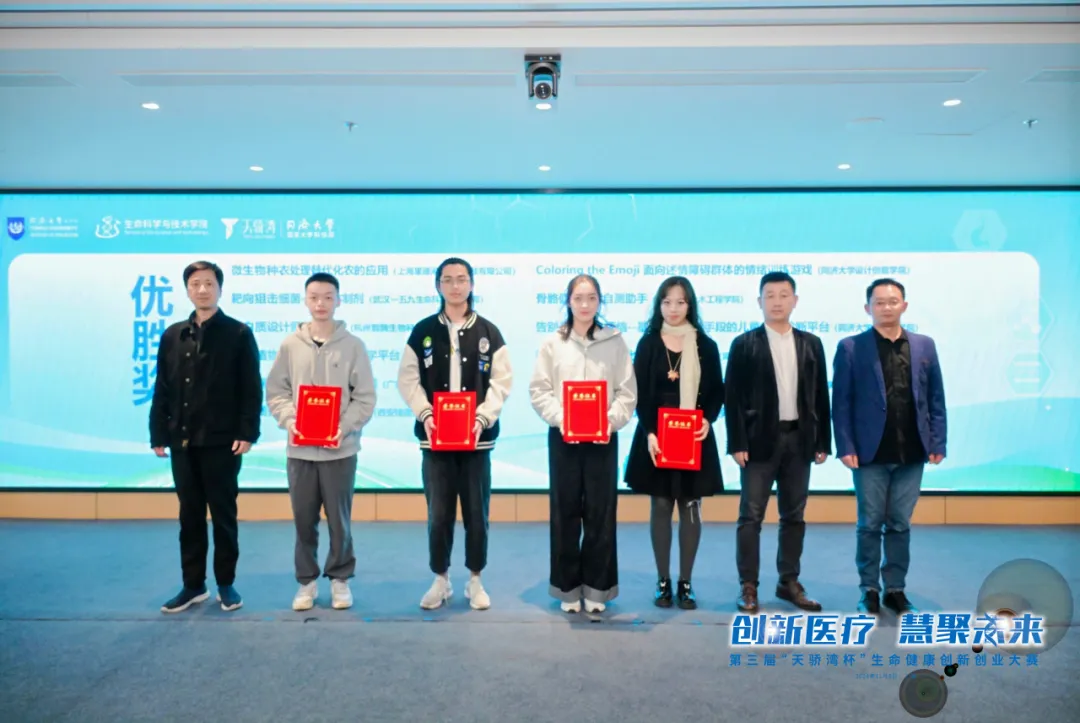 据介绍,“天骄湾杯”生命健康创新创业大赛是同济科技园携手同济大学医学院、生命科学与技术学院,充分利用普陀区产业优势,共同打造的创新创业赛事。此次赛事吸引了全国12个省市逾百个项目参与,12个项目进入决赛。决赛经过激烈项目路演,最终角逐出企业组“优祺生物-利用iPSC-RPE细胞移植治疗干性AMD”、团队组同济医学院“张帆-‘JoyRehab’智能康复医疗系统”等项目荣获赛事一、二、三等奖。