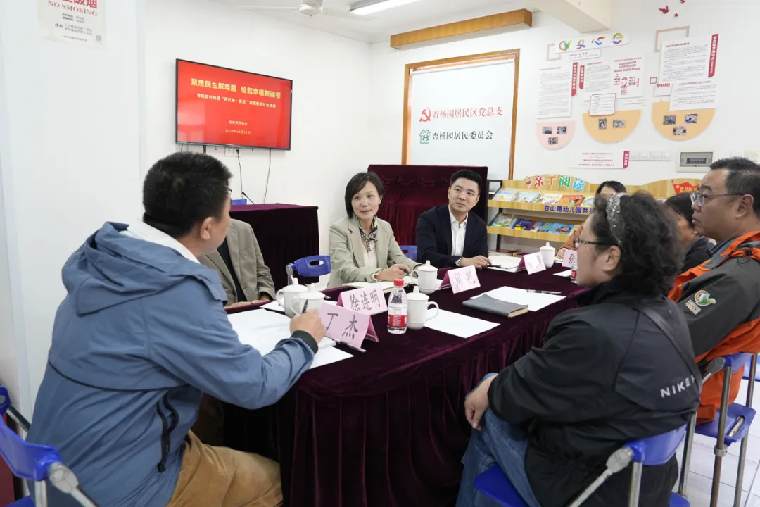 在曹杨新村街道杏杨园居民区,周艳一行与基层干部、居民代表等座谈交流,倾听群众呼声,解决群众“急难愁盼”问题。座谈会上,大家踊跃发言,围绕群众关心的垃圾点选址、电动车充电桩设施增设、物业提质增效等问题建言献策,逐一梳理。周艳表示,要践行“人民城市人民建,人民城市为人民”理念,将民生福祉作为工作的出发点和落脚点,把群众家门口的事情放在心上,广泛听取群众意见和建议,做细做实各项民生工作,把“金点子”变成“金果子”,让群众有更多获得感、幸福感、安全感。