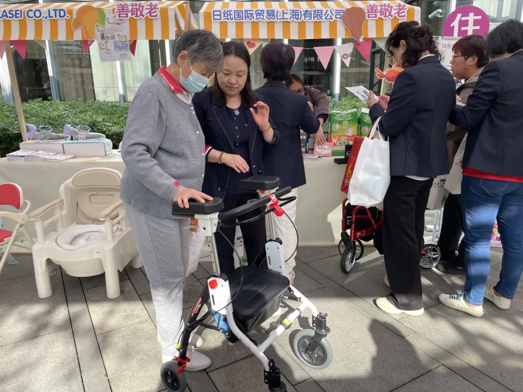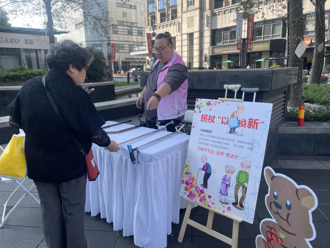 现场的“拐杖以旧换新”区域让居民停下脚步,更换新拐杖。记者看到,摊位上摆放着4款不同款式的拐杖,工作人员根据老人的个人需求为他们推荐最适合的款式,并手把手教老人使用新拐杖。70多岁的刘阿婆脸上洋溢着笑容,拄着新拐杖试走了几步,“旧拐杖已经用了好多年了,这个新拐杖很结实很稳定,走路不费劲,还能支撑我站起来,真是太好了!”