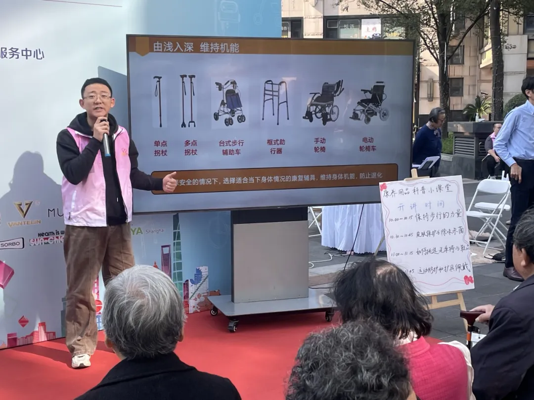 上午10点,讲座正式开始。来自中日两国的行业专家轮流分享,结合适老化产品应用和养老经验,为老年朋友带来健康养生与养老用品知识。讲座讲到关键处,不少老人频频点头。互动环节中,大家纷纷提出自己的健康问题:“我的膝盖有点僵硬,适合用什么样的辅助器具?”专家们耐心解答,幽默风趣的讲解让大家不仅学到了实用知识,还带回了些生活的小妙招。