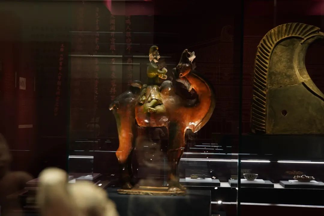 展览布置尽显巧思。观展动线优化后,原出口变为进口,展览期间,还将举办8场唐代风格的室内乐音乐会,乐手身着唐代服饰、化上唐妆演奏,带领观众沉浸式感受唐文化魅力。入口处的昭陵六骏艺术装置尤为吸睛,原件藏于西安碑林博物馆,另有两件于1914年被盗,现藏美国宾夕法尼亚大学博物馆,此次展出的复制件高度还原,引发人们对文物保护与回归的思考。