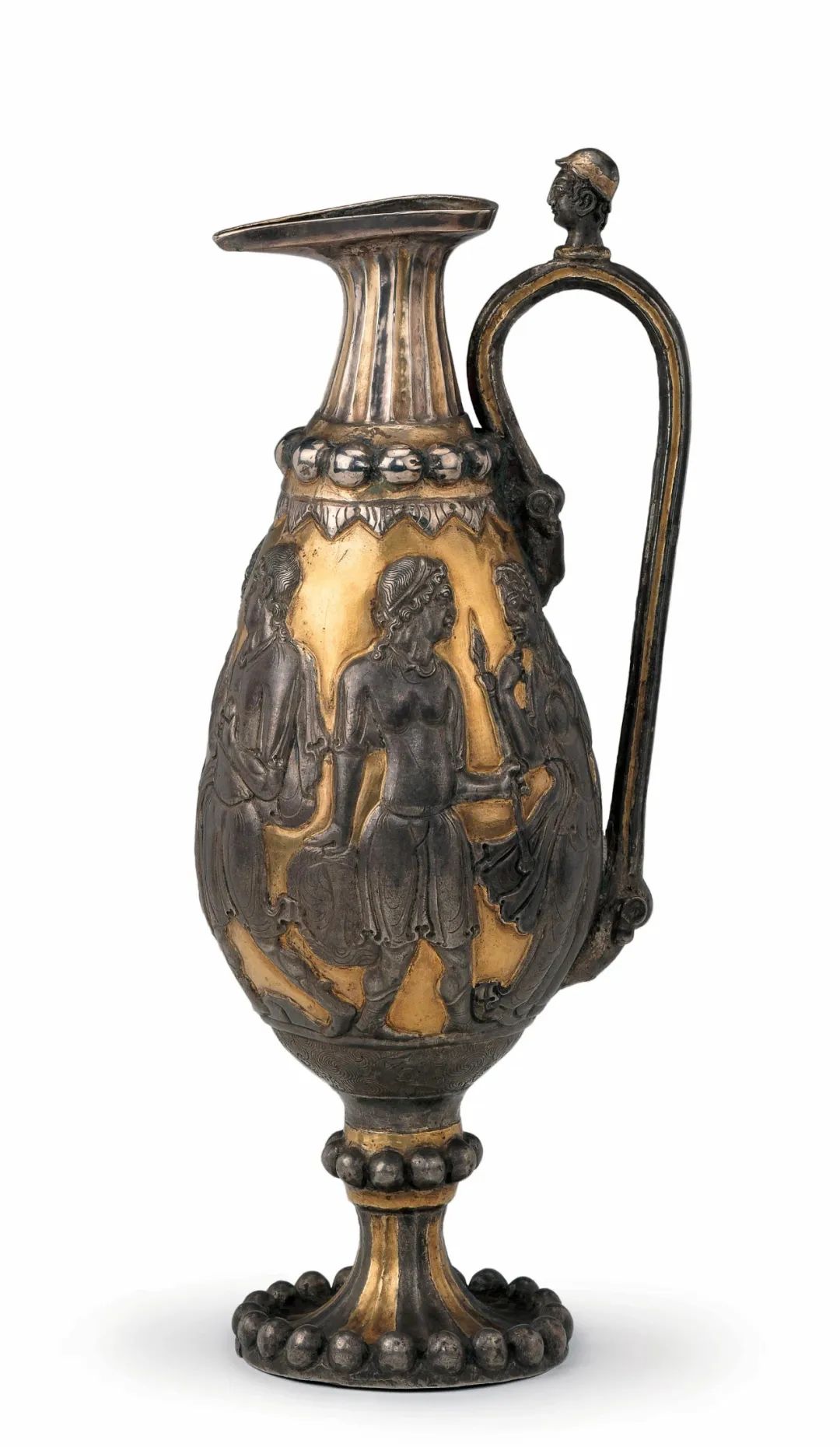 鎏金银壶出土于宁夏固原,处在中原农耕文化和北方游牧文化的交汇处。壶身刻画的3组图像,分别为古希腊特洛伊战争中“帕里斯裁决”“劫掠海伦”“海伦归来”的故事。这件器物制作于今阿富汗北部地区,具有典型的波斯萨珊王朝金银器风格。它将希腊文明、波斯文明和中华文明串联了起来,见证了文化交流与贸易往来,承载着古文明的辉煌和丝路的记忆。(2025年3月底展出,敬请期待)
