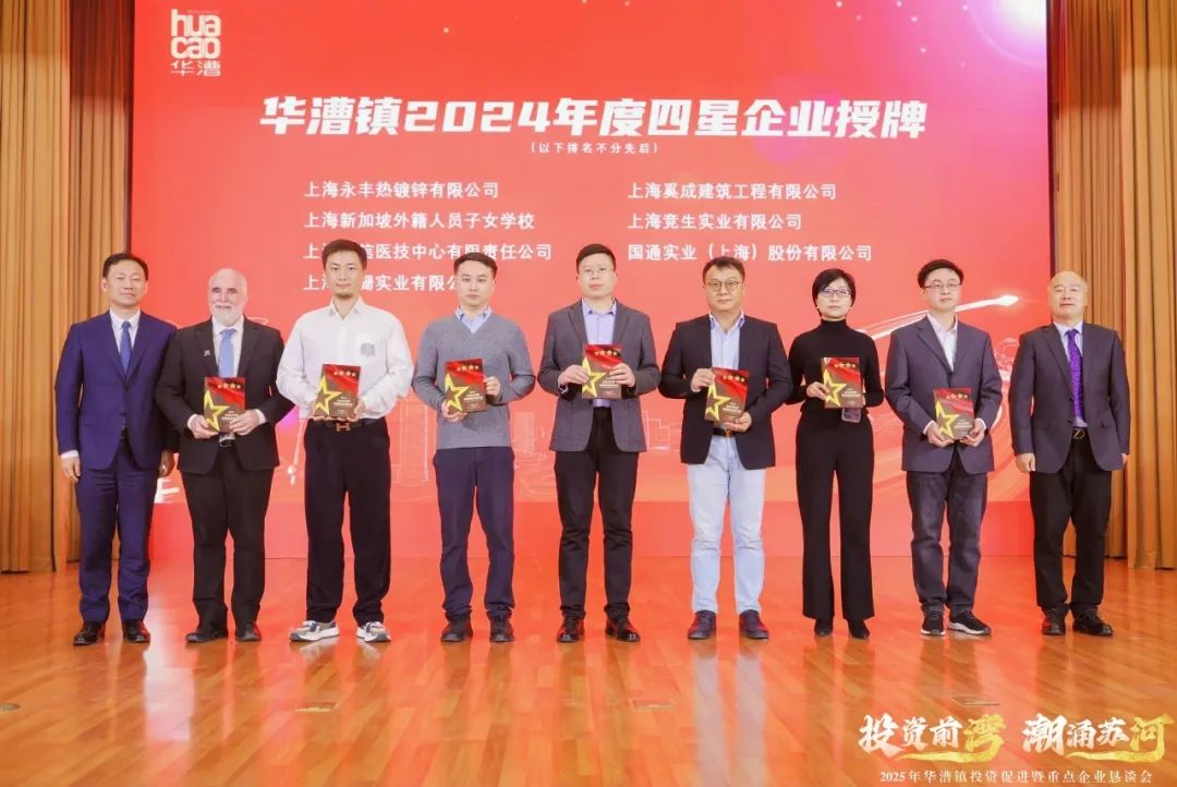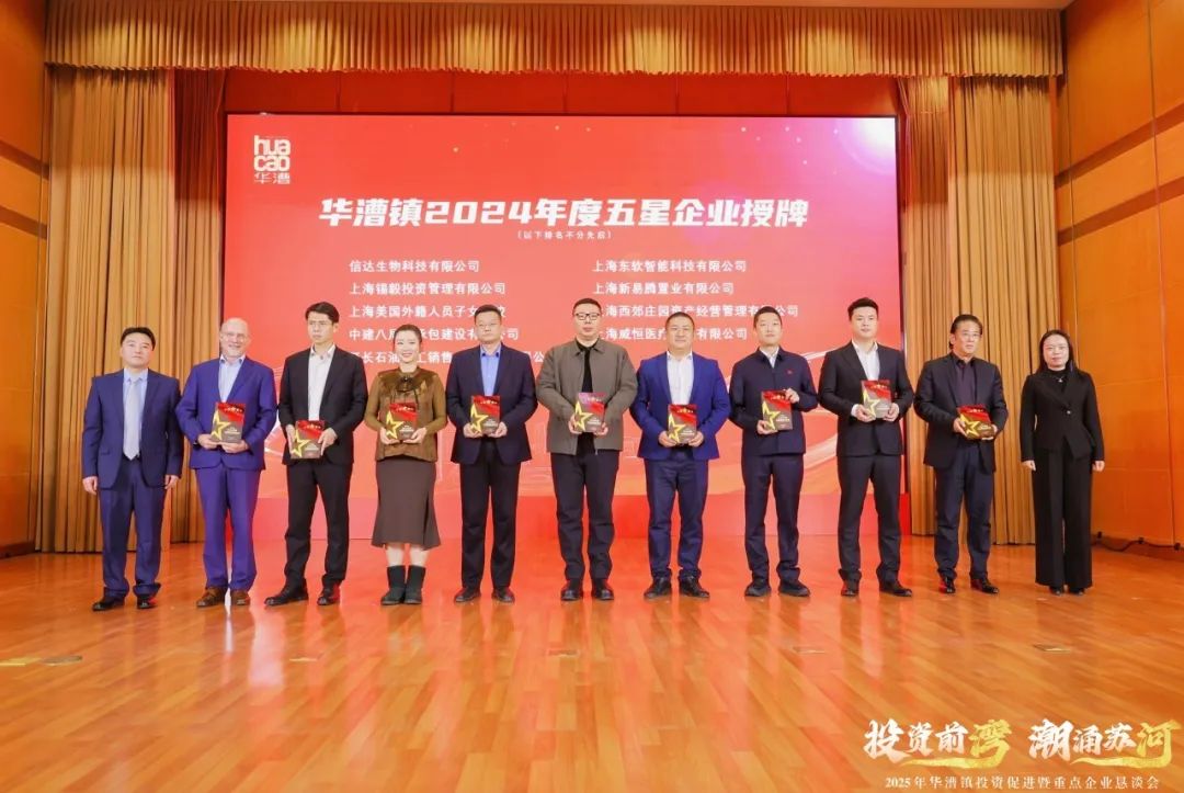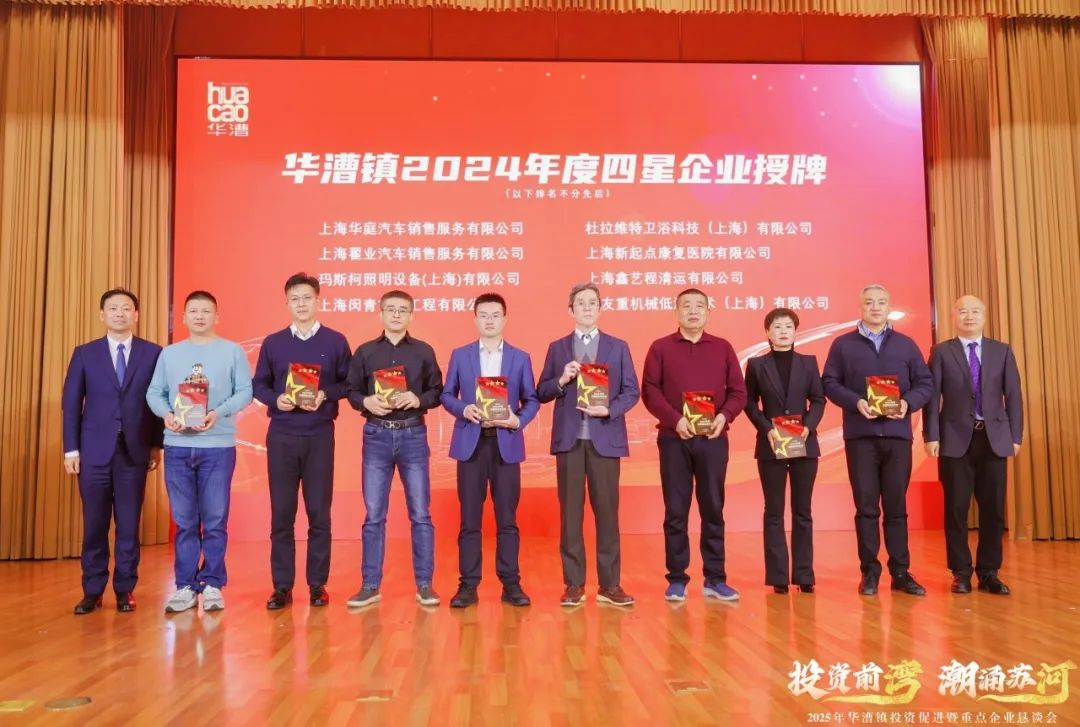 新企业的入驻为地区发展注入新活力,企业所看重的扎实产业基础,是华漕本土企业“老朋友”们的深耕与发展的成果。活动上,华漕镇举办星级企业授牌仪式,刘飞、彭秀峰、李斌、李炜,镇党委副书记杨春华、史雪霏分别为威高集团、信达生物、卓然工程、鸣志电器、上海美国学校在内的25家“五星”企业、24家“四星”企业、32家“三星”企业授牌,感谢他们2024年为华漕镇经济实现平稳向好的高质量发展态势做出的积极贡献。