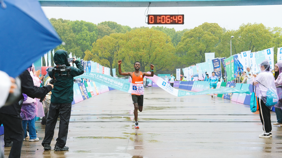 经过激烈角逐,外国选手Korme Negasi Tuji以1小时06分51秒的成绩,斩获半马男子组冠军。这位“老马”赛后接受采访时难掩兴奋之情,“马桥的赛道体验很棒,虽说天气不太好,但我对成绩比较满意。”