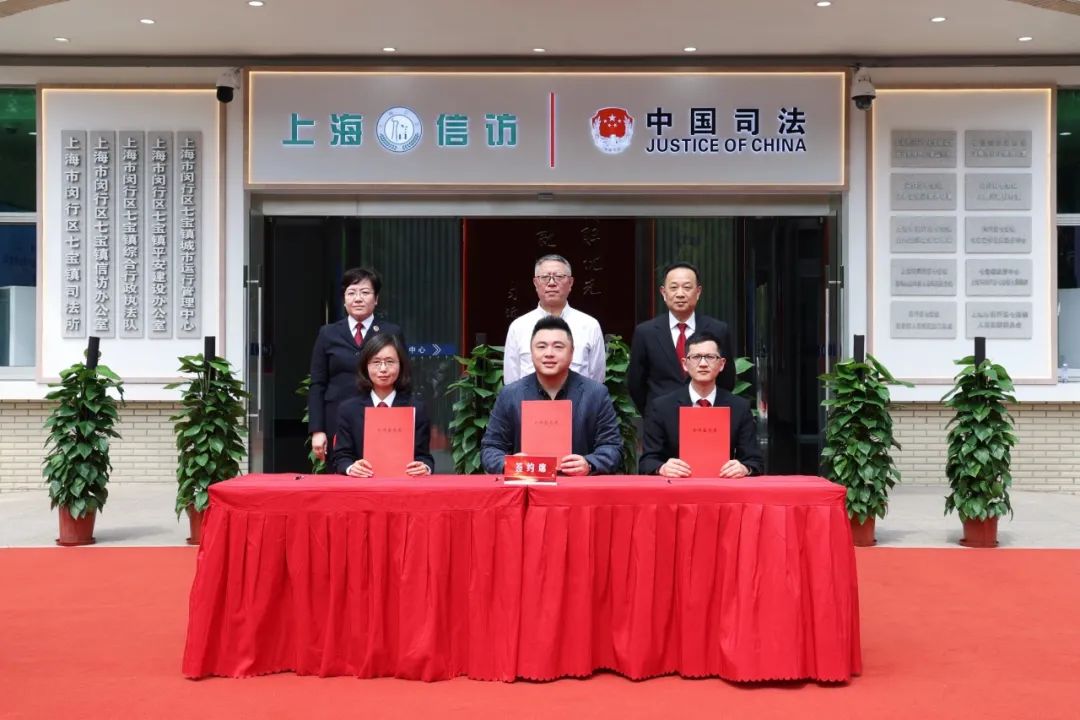 4月24日上午,闵行区举行法官(检察官)入驻街镇综治中心签约仪式暨七宝镇综治中心揭牌仪式。