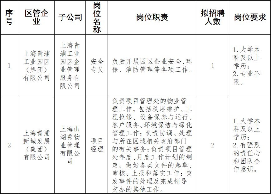 2024年青浦区区管企业带编入伍定向招聘公告来了~ 2024-06-03 来源:青浦区人民政府