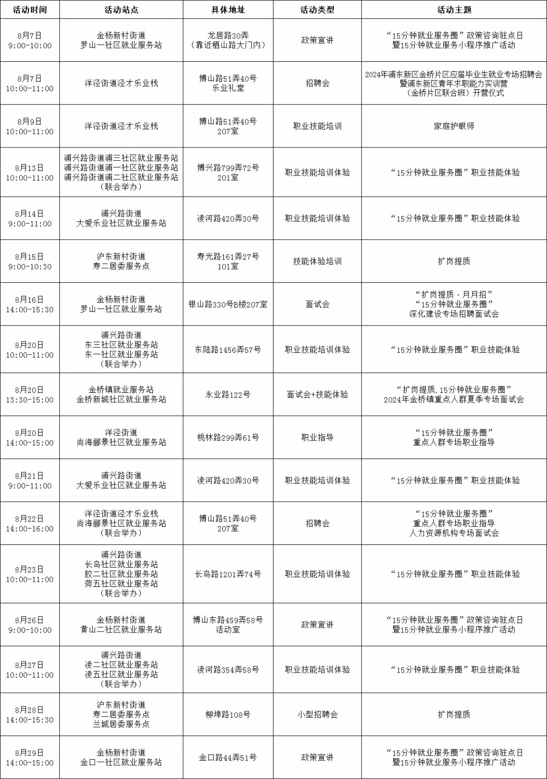 “15分钟就业服务圈”社区就业服务站点建设市政府实事项目作为人社部门常态化政府开放活动之一,我们将持续发布精彩服务内容,今天为大家带来浦东、普陀、崇明3区近期就业活动安排!