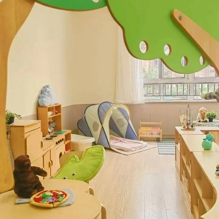 “蘑菇宝宝屋”占地面积达130平方米,空间布局以宝宝发展为核心,融合适宜性与多样性原则,精心打造了滑滑梯、娃娃家、感统运动区、积木构建区、绘本阅览区及艺术涂鸦区等多个功能区域,营造出浓郁的家庭氛围。宝宝们在这里可以自由探索,与环境亲密互动,无论是涂鸦创作、语言学习、搭建游戏还是感统训练,都能促进宝宝身心健康的全面发展。