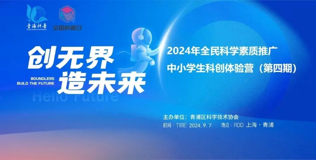为响应全民素质推广和“全国科普日”主题活动青浦科学技术协会创办科创营地,带给家长和孩子带来精彩纷呈的科创体验!青浦科学技术协会推出以“创无界,造未来”为主题的第四期科创营活动。