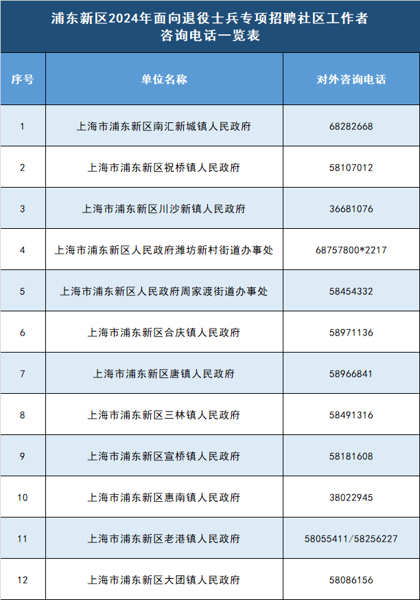 浦东新区2024年面向退役士兵专项招聘社区工作者公告