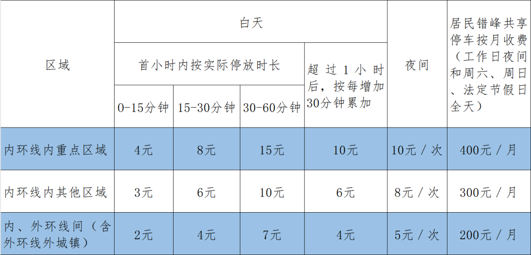 根据市价格主管部门会同市财政部门核定的本市智慧道路停车场收费标准和计费规定(如下表),本次新增的6处内、外环线间的收费标准和计费规定执行如下: