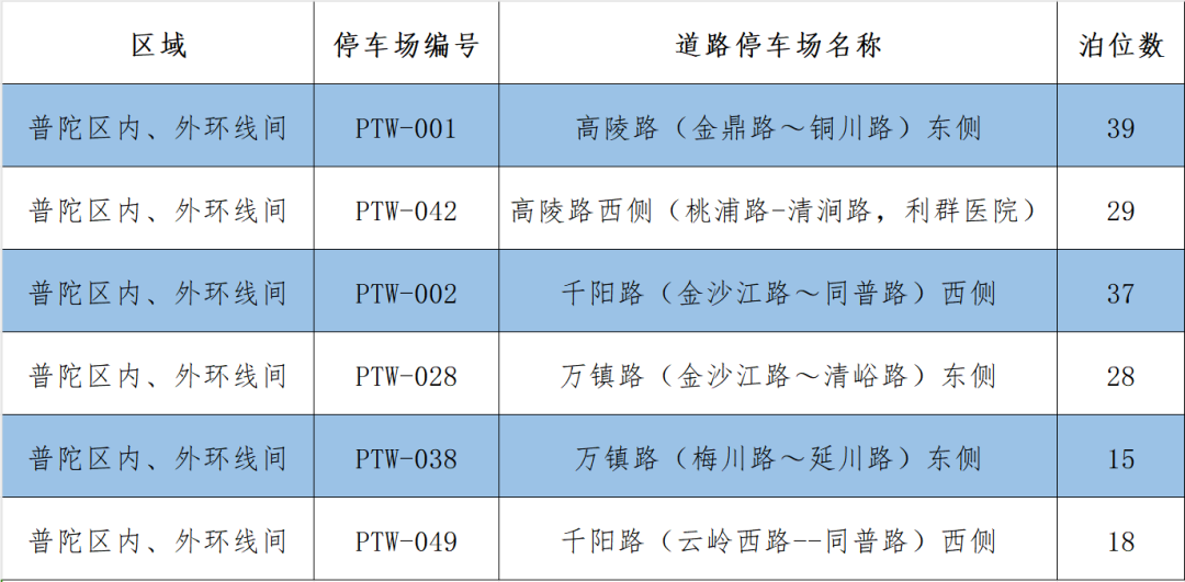 根据市、区公安交警部门核定,本次新增的6处智慧道路停车场具体设置信息如下表: