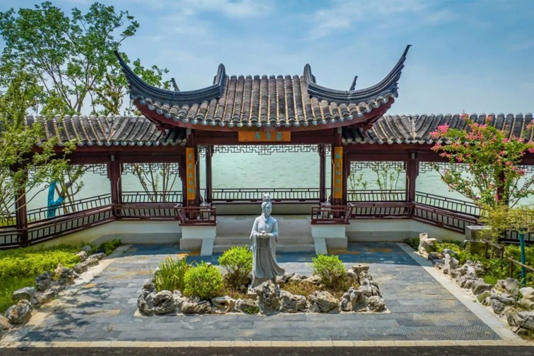 曲水流觞与粉墙黛瓦相映成趣,文化展览与青绿风光相辅相成。夏秋之际,青溪园半池莲叶半池水,特别适合闲暇之时来此漫步。