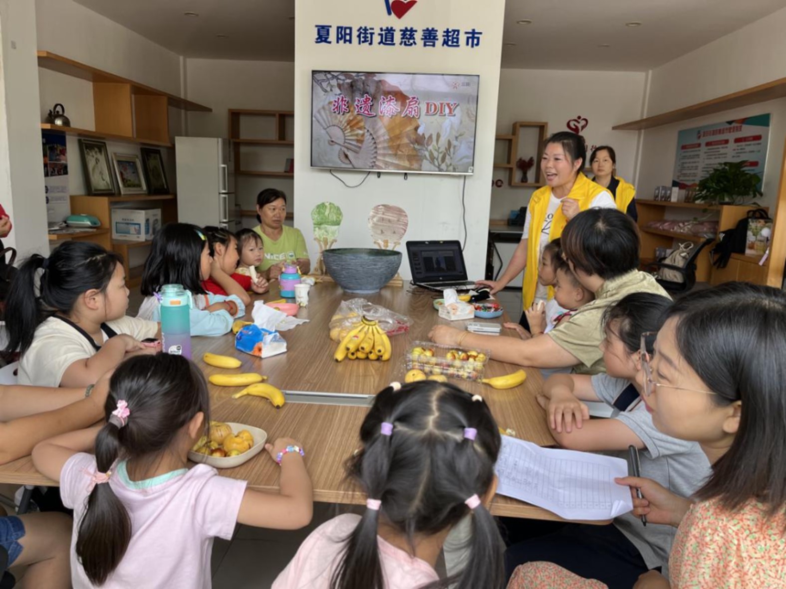 8月30日下午,夏阳街道慈善超市开展了一场暑期非遗漆扇制作体验活动,此次活动共吸引辖区内15组亲子家庭参加。在志愿者和家长的指导和帮助下,孩子们亲手体验漆扇制作。活动让孩子们感受到非遗手工的无限魅力,丰富少年儿童暑期精神文化生活,也在一定程度上增进亲子关系,促进家庭和谐。