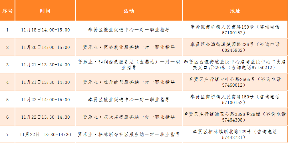为助力重点群体实现就业,奉贤区“15分钟就业服务圈”服务站点各类活动安排新鲜出炉,为你的就业创业之路暖心护航。本周活动抢先知,精彩别错过~