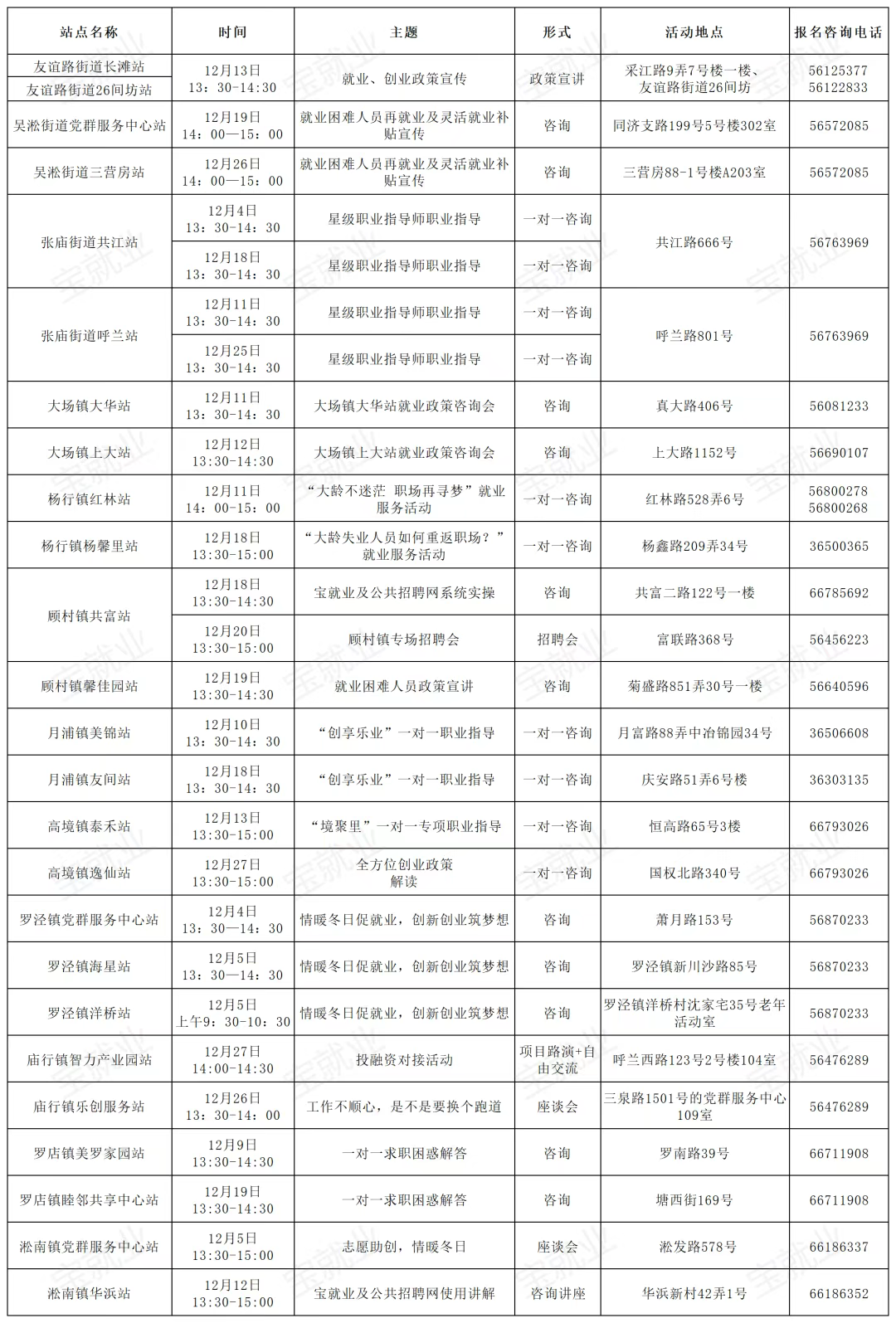 宝山区“15分钟就业服务圈”活动排片表