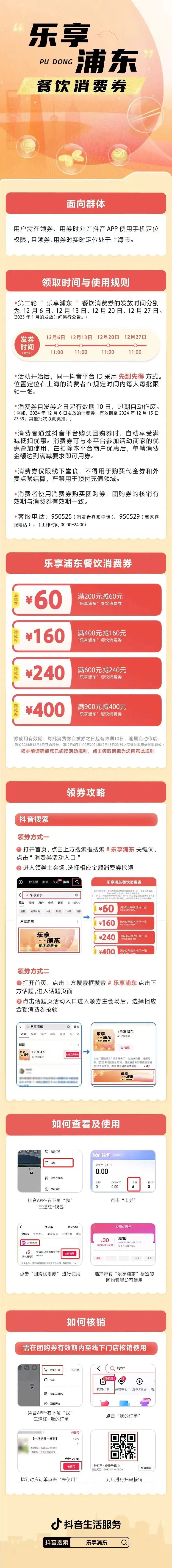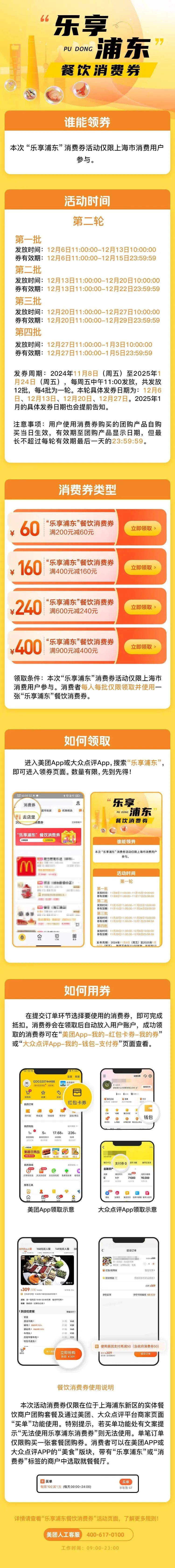 为贯彻落实国家和上海促进服务消费相关部署,活跃餐饮堂食,增加消费人气,浦东新区决定发放“乐享浦东”餐饮消费券。现将第二轮餐饮消费券相关事宜公告如下: