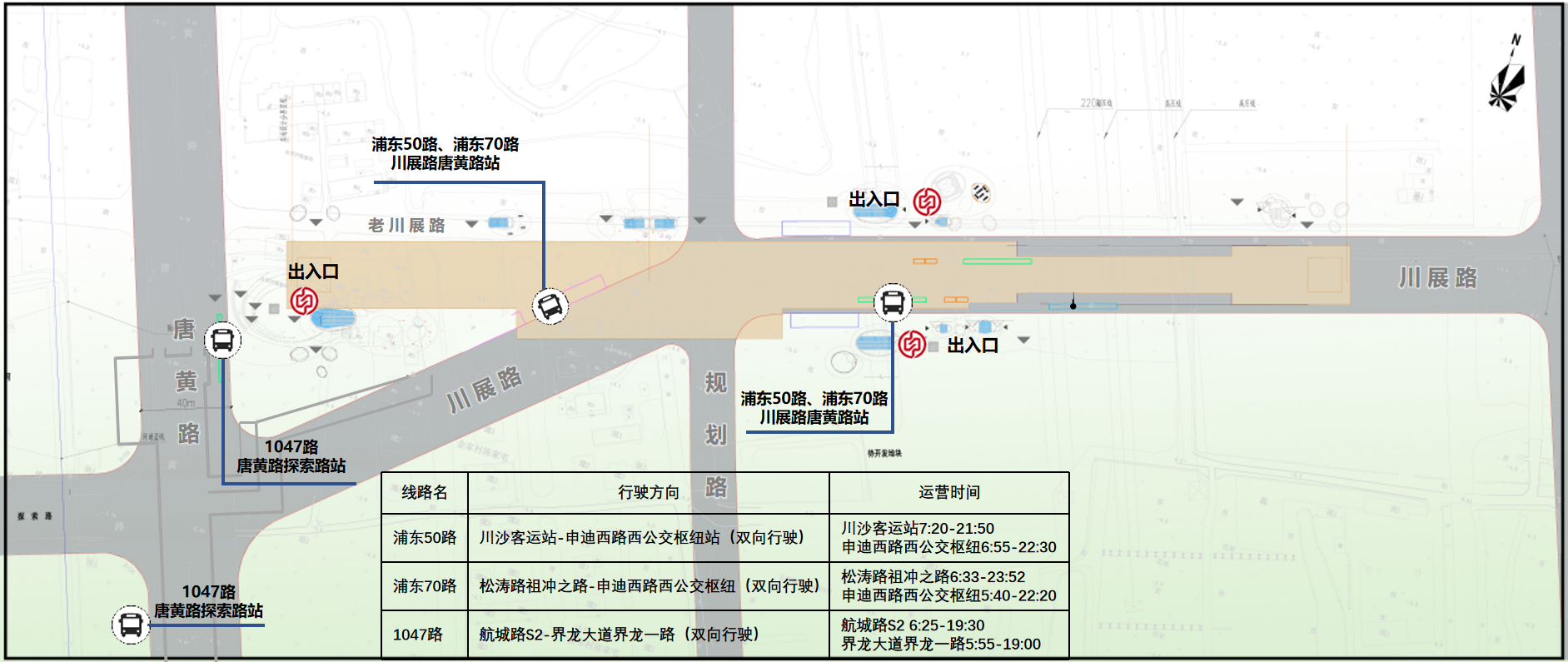 ①浦东50路,配套公交车站:川展路唐黄路站,乘坐该线路可到达上海国际旅游度假区、川沙城区等,衔接轨交2号线川沙站;