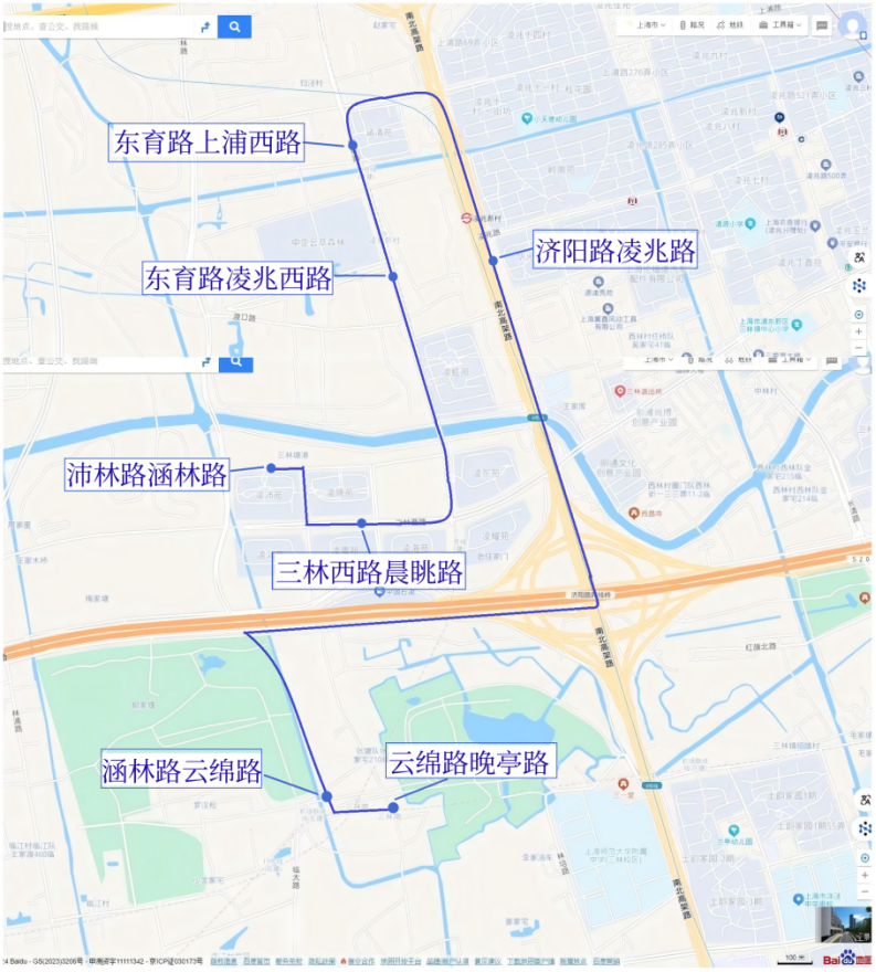 其中,三林南站配套线路为1022路,配套公交车站点为云绵路晚亭路站、涵林路云绵路站,乘坐该线路可就近到达三林凌沛苑、凌晓苑等多个居民小区,并衔接轨交8号线凌兆新村站。