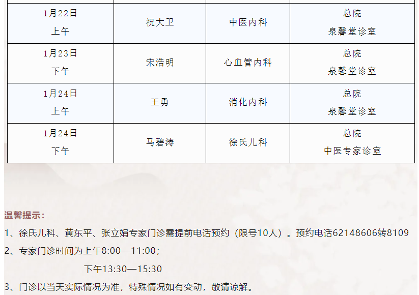 具体专家门诊安排,以当日专家出诊情况为准,为避免跑空,建议您提前电话咨询确认,咨询电话:32270165。