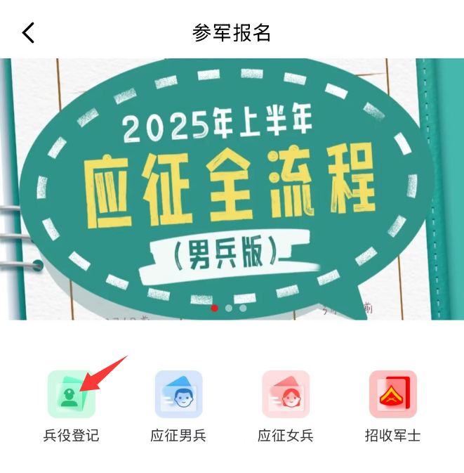 或登录中国军号APP,点击“参军报名”入口,点击“兵役登记”完成登记,可直接参加网上应征报名。