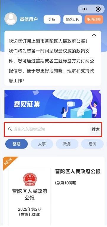 “普陀区人民政府公报”微信小程序怎么关注呢?