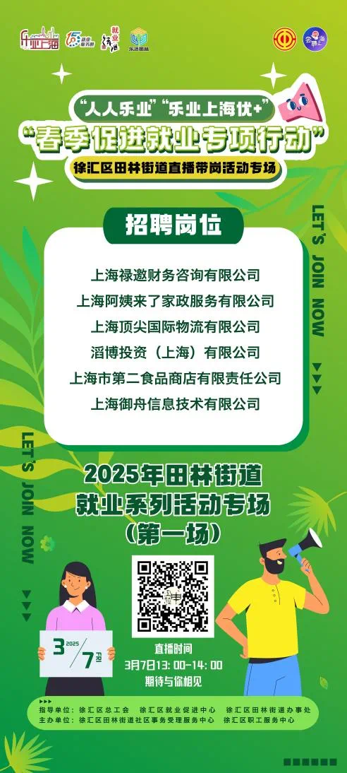 活动内容:春季促进就业专项行动田林街道直播带岗招聘会