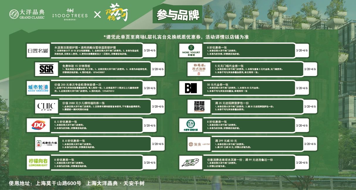 2、各家商场推出的优惠券在可用时长及商户上各有不同,请以实际情况为准。