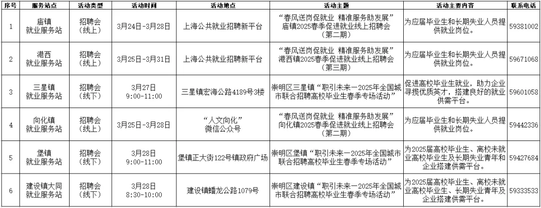 “15分钟就业服务圈”社区就业服务站点建设市政府实事项目作为人社部门常态化政府开放活动之一,我们将持续发布精彩服务内容,今天为大家带来静安区、杨浦区、闵行区、黄浦区、长宁区、奉贤区、崇明区近期就业活动安排!
