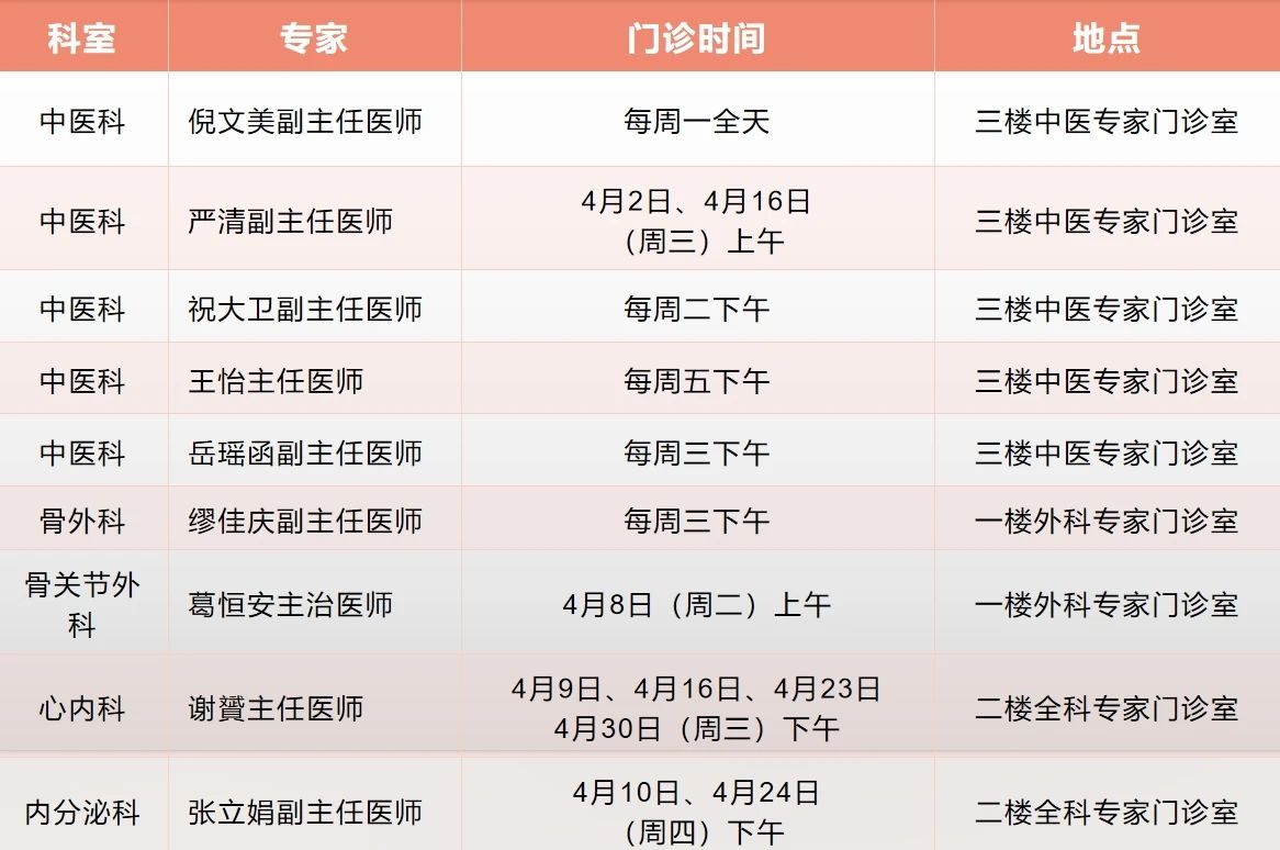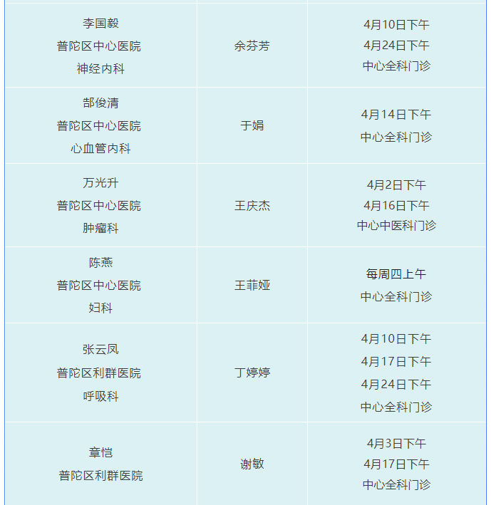 “家门口”就能看名医!普陀2025年4月专家门诊安排来啦 2025-04-09 来源:普陀区人民政府