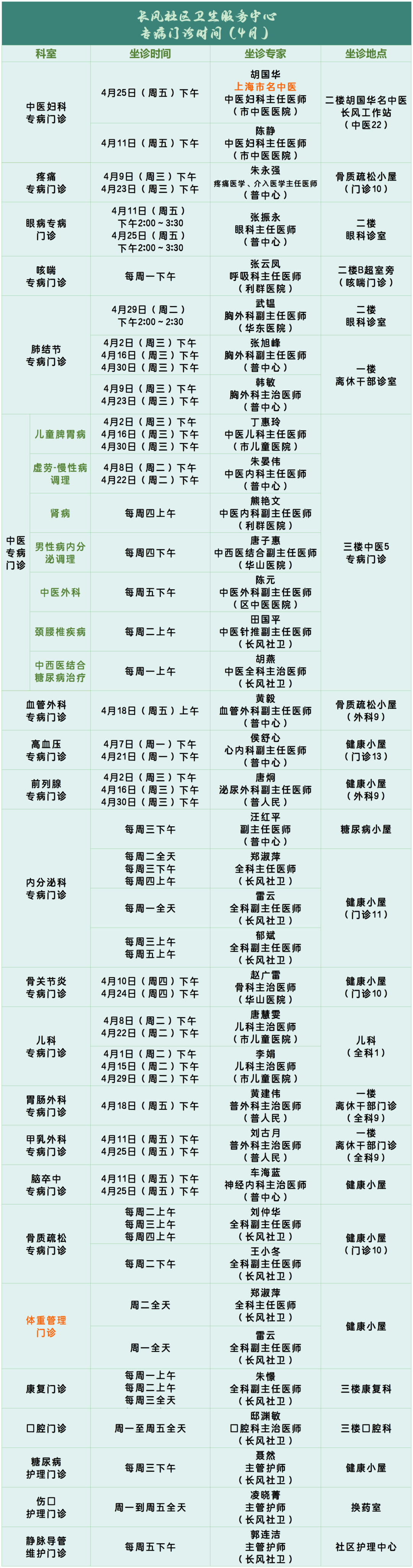 具体专家门诊安排,以当日专家出诊情况为准,为避免跑空,建议您提前电话咨询确认,咨询电话:32270165*8001。