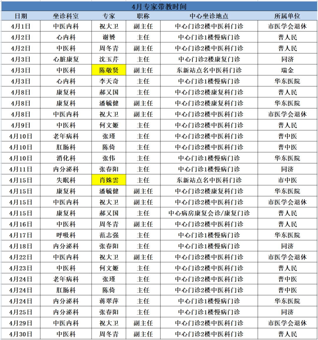 另:陈敬贤副主任每周二上午东新站点吴政医生处预约;失眠门诊每周二下午东新站点1楼名中医工作室预约,避免跑空!