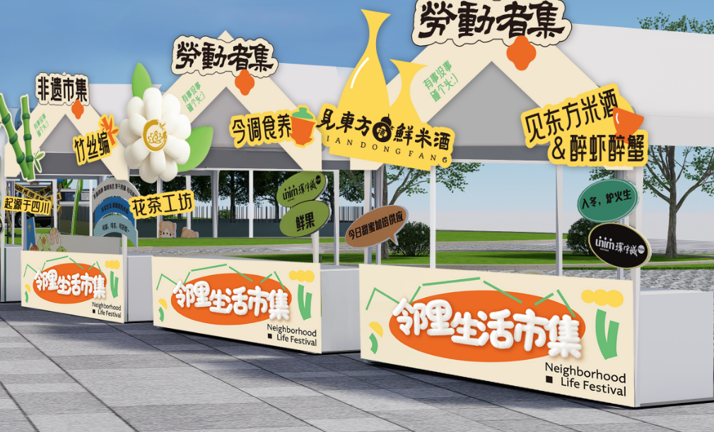 主题快闪、劳动者集、非遗市集.…-场充满烟火气的邻里碰头会,满足全年龄段市民顾客的体验。