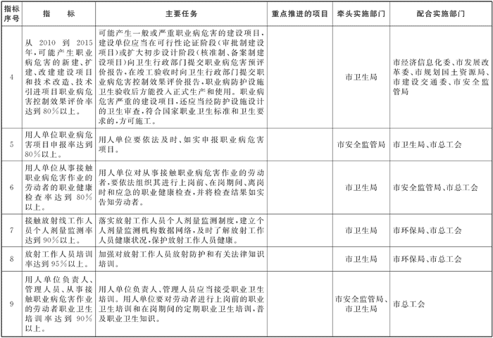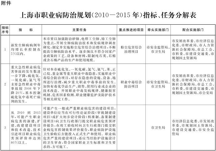 附件:上海市职业病防治规划(2010-2015年)指标、任务分解表