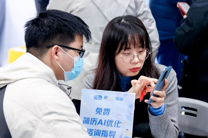 互动体验区集科技、服务、体验、招聘于一体,利用人工智能、大数据、云计算等先进技术,为应聘者提供全方位、个性化的就业服务和新兴行业就业机会。“职”Show驿站区免费提供职业妆容打造、求职证件照拍摄、简历AI修改等职业形象打造的一条龙服务;AI模拟面试体验区高度还原真实面试场景,帮助应聘者积累面试经验,提升面试中的应变、表达、思维等能力;机器人展示区现场演示最新科技,招聘企业快速吸引人流、高效招揽技术人才;动漫文创展区在知名原创IP动画、游戏及周边全产业链成果展示的带动下,聚集极高人气,岗位广受青年青睐。