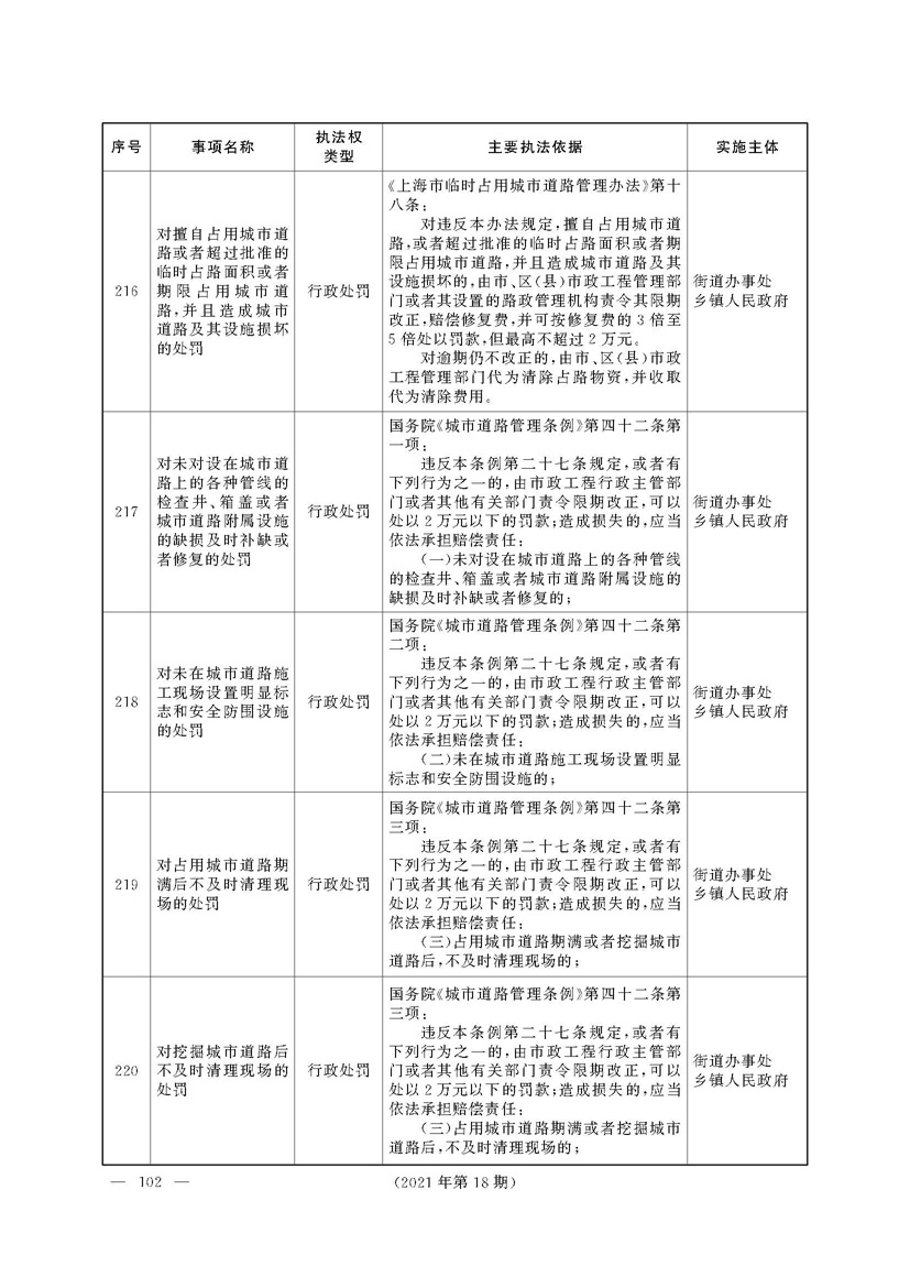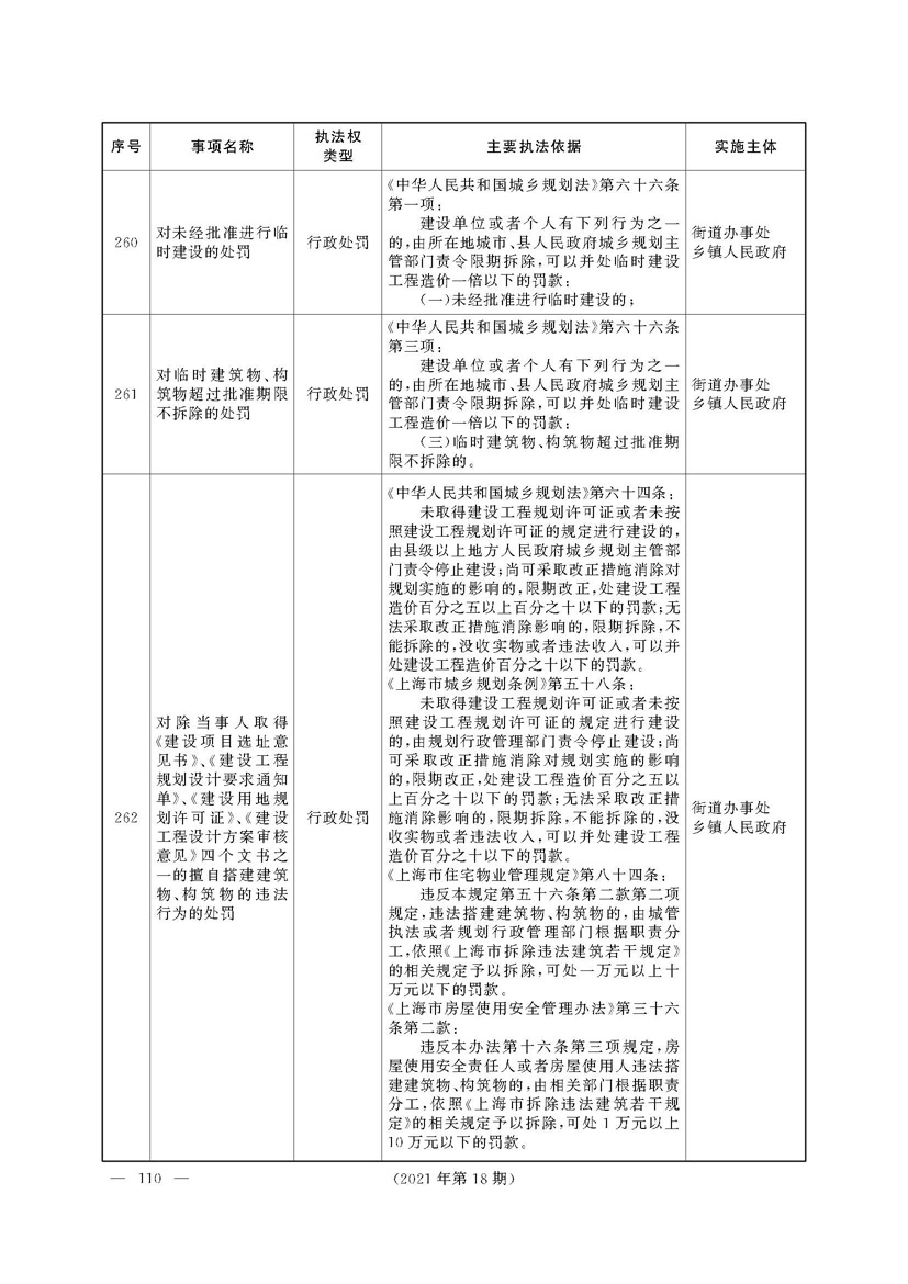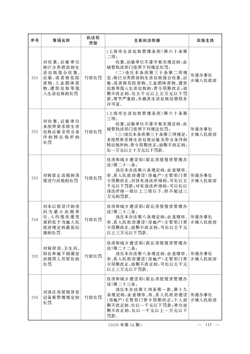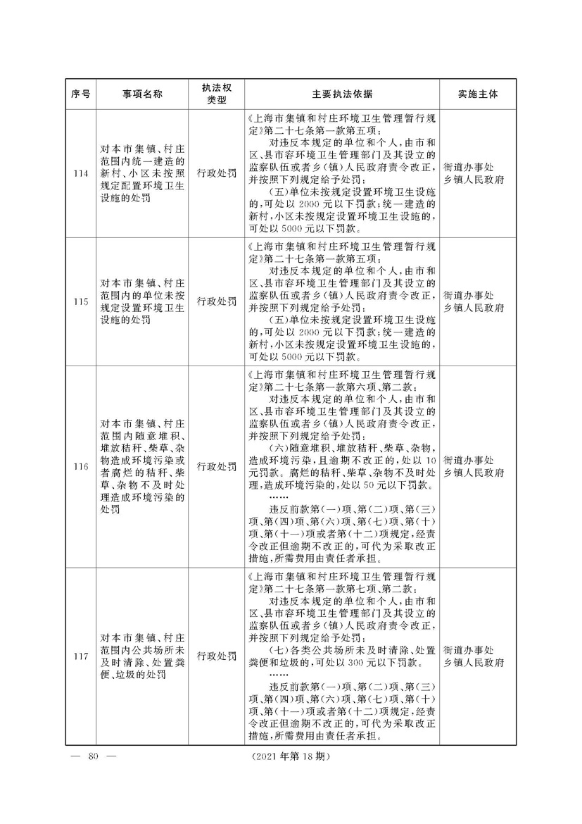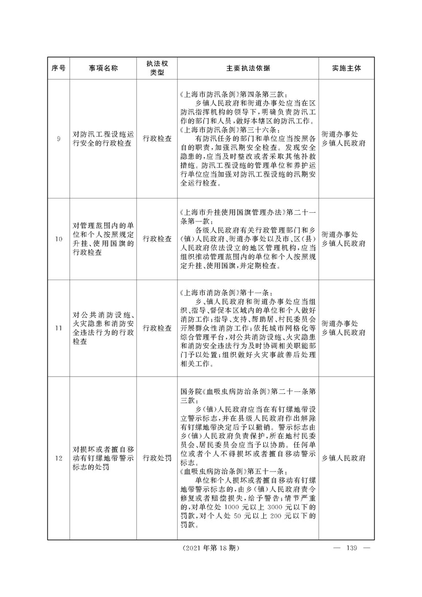 上海市人民政府关于印发《上海市街道办事处乡镇人民政府首批行政执法事项目录清单》的通知
